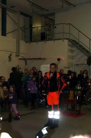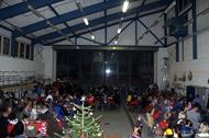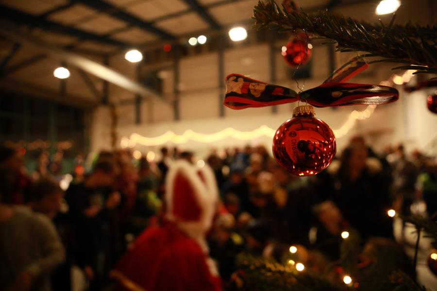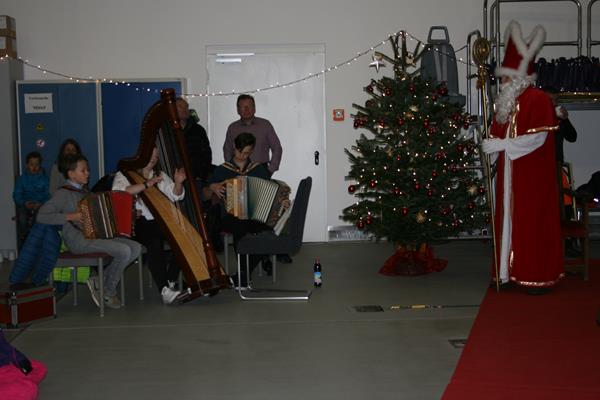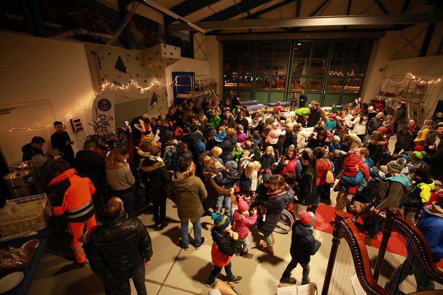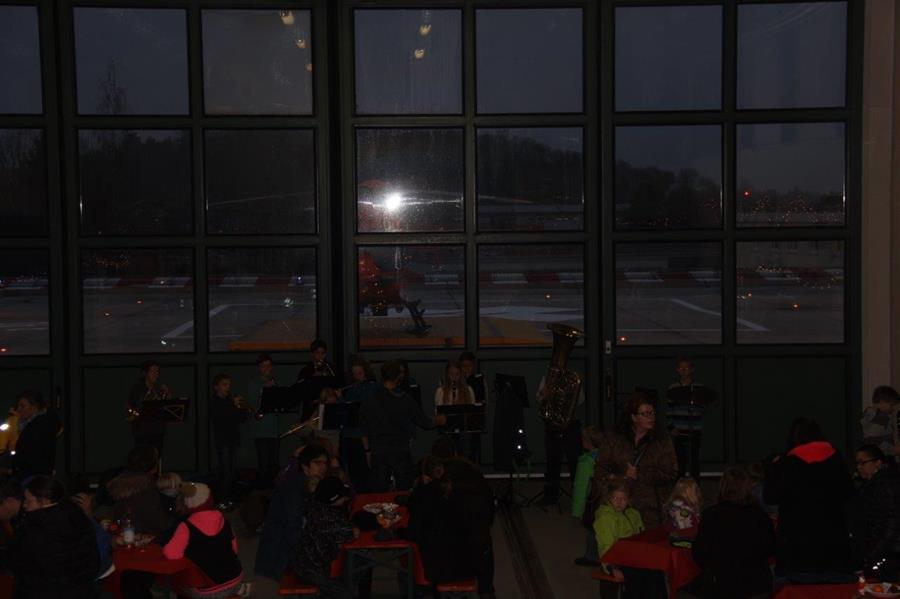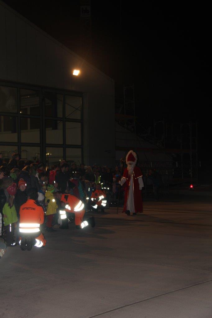 „Leider kann heuer der Nikolaus nicht pünktlich kommen, da „Christoph 14“ kurz bevor er den heiligen Mann abholen konnte, noch einen dringenden Einsatz erhalten hat“ schallte es am Beginn des Festes durch die Lautsprecheranlage. Dies tat der Stimmung jedoch keinen Abbruch, da der Hangar weihnachtlich dekoriert und ausgestattet mit Plätzchen, Stollen und Kinderpunsch zum Feiern einlud. Die jungen Stadtmusikanten aus Traunstein sorgen mit weihnachtlichen Liedern für eine stimmungsvolle Atmosphäre. Plötzlich aber sind am Himmel kleine Lichter zu erkennen und ein Dröhnen wird laut und lauter. Schnell laufen die Gäste zu den Toren des Hangars und sehen den Rettungshubschrauber landen. Ein Intensivpatient wird ausgeladen und zur weiteren Behandlung ins Klinikum gebracht. Minuten später macht sich „Christoph 14“ schon wieder auf in den dunklen Abendhimmel, um den wichtigen Fluggast abzuholen, auf den die Kinder schon gespannt warten.