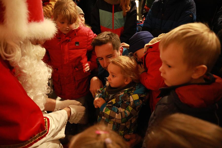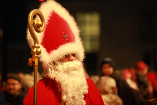 Trotz des großen Andrangs nimmt sich der heilige Mann für jedes Kind Zeit und lässt sich ihre persönlichen Erlebnisse schildern, bevor sie mit einem kleinen Säckchen beschenkt werden.