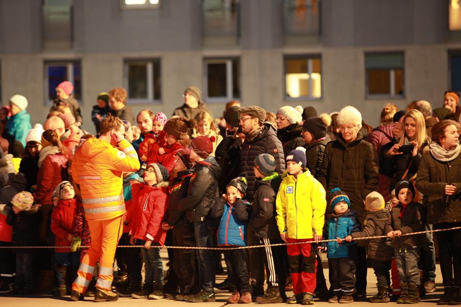 Heute war es mal wieder so weit, der Heilige Nikolaus wurde zum 4. Mal mit dem Rettungshubschrauber Christoph 14 nach Traunstein eingeflogen. Während der Wartezeit, begrüßte der Ltd HCM , Robert Portenkirchner die Kinder und ihre Eltern, Untermalt wurde das Ganze von den jungen Stadtmusikanten aus Traunstein. Vor den Augen von ca. 250 Gästen, darunter 45 Kinder die im letzten Jahr durch die Medizinische Crew von Chr. 14 versorgt wurden, deren Angehörige und Geschwister und Patienten der Kinderstation des Klinikums, schwebte der Hubschrauber sanft in der Abenddämmerung ein.