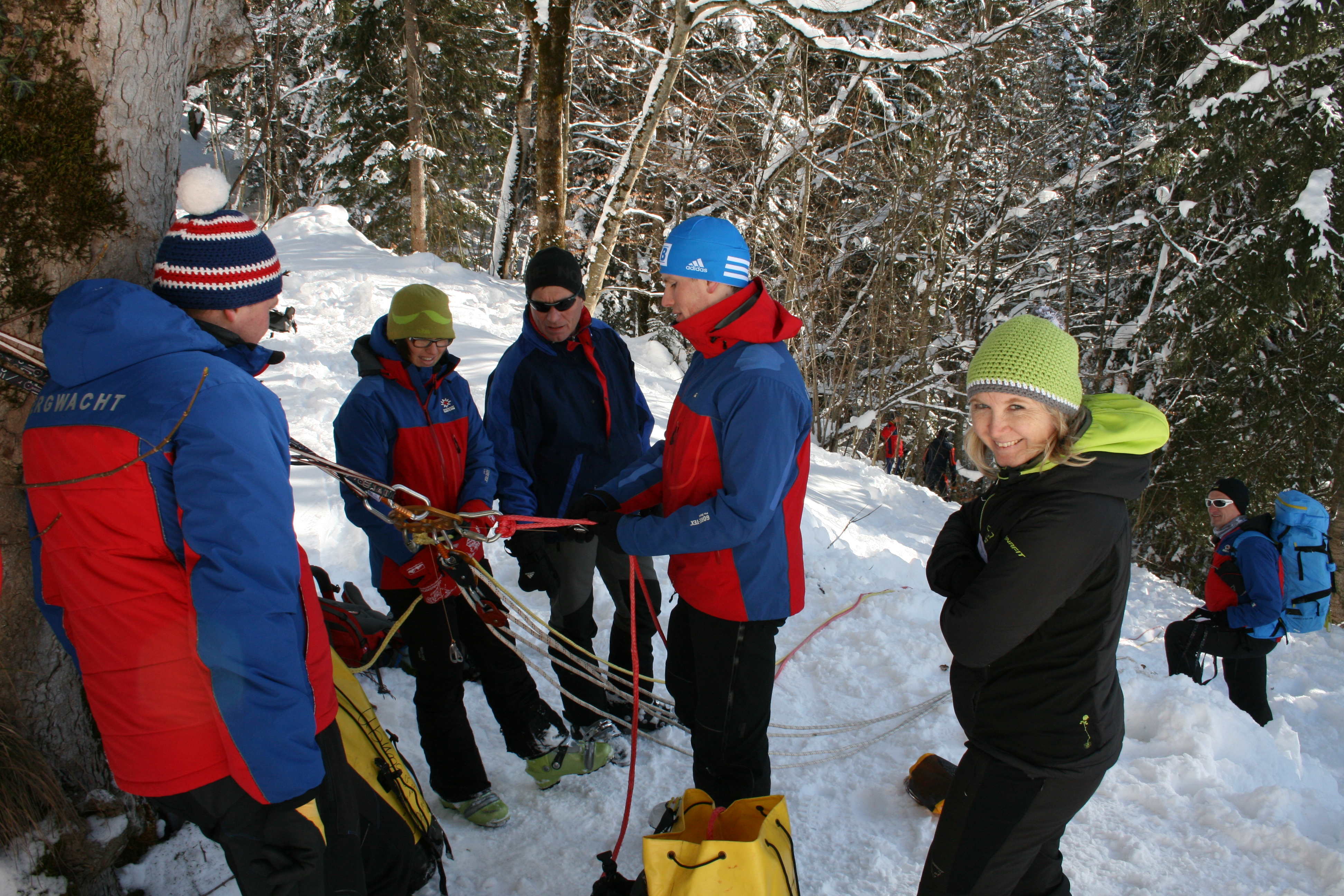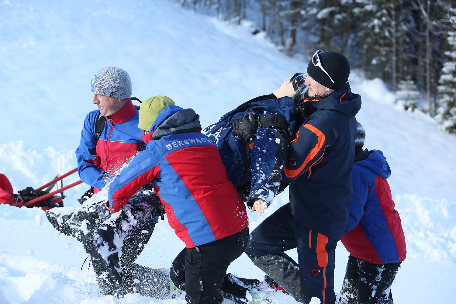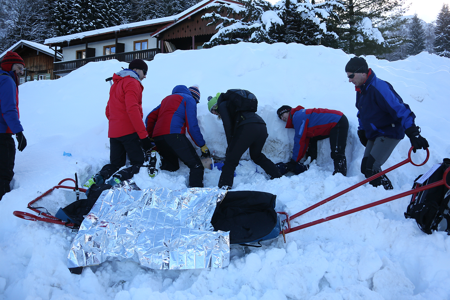 Das Lehrteam Notfallmedizin der Bergwacht-Region Chiemgau hat am Wochenende an der Berchtesgadener Bergrettungswache und in Vorderbrand einen Praxis-Fortbildungstag für 36 Ärzte, Sanitäter, Ausbilder und Hubschrauber-Besatzungsmitglieder durchgeführt, bei dem in gemischten Teams die Rettung und Versorgung von Lawinenopfern und verunfallten Wintersportlern geübt wurde.