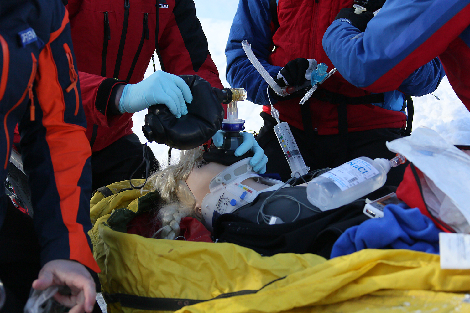 Winter-Fortbildung: Bergretter trainieren Notfallmedizin im Schnee