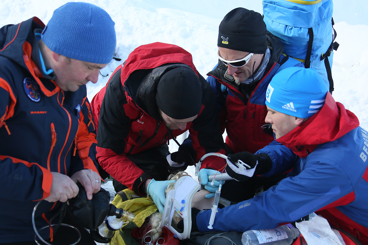 Die alpine Notfallmedizin stellt die Einsatzkräfte von Bergwacht und Rettungshubschraubern immer wieder vor besondere Schwierigkeiten, die das unwegsame und alpine Gelände und zum Teil extreme Witterung mit sich bringen. Besonders Lawinen und die Versorgung von schwer Verletzen im winterlichen Gelände verlangen den Rettern oft alles ab. „Die Thematik ist speziell, weshalb wir bei diesem ersten Chiemgauer Bergrettungstag Erfahrungen, Tipps und Tricks austauschen und gemeinsam die Versorgung unter realistischen Bedingungen trainieren wollten“, erklärt Dr. Freund.