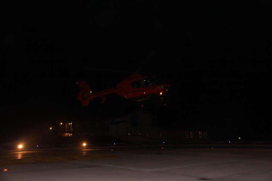 Nach einer kurzen Instruktion durch den leitenden Rettungsassistenten Robert Portenkirchner durften die Besucher auf die Landefläche am Dach des Traunsteiner Klinikums. Gebannt starren die vielen funkelnden Kinderaugen in den dunklen Abendhimmel und beobachten, wie die Scheinwerfer näher kommen; und bald ist der orangefarbene Rettungshubschrauber zu erkennen, der in einem weiten Bogen zu seinem Landeplatz fliegt und sanft auf seiner gelben Plattform aufsetzt.