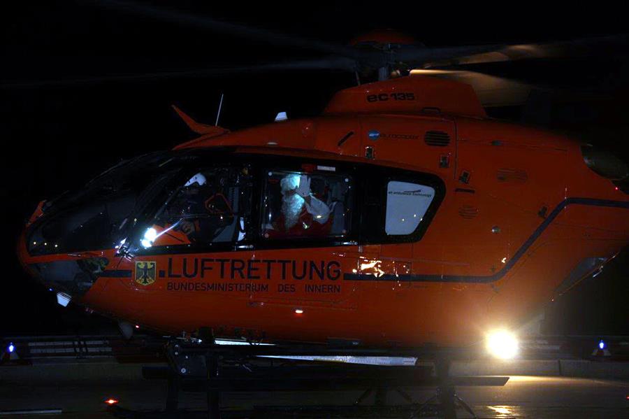 Zum neunten Mal in Folge ließ das Team des Rettungshubschraubers „Christoph 14“ den Nikolaus für all diejenigen Kinder einfliegen, die als verletztes oder akut erkranktes Kind vom Rettungshubschrauber behandelt oder transportiert wurden.