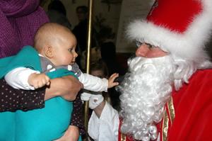 Als die Rotorblätter still stehen, stürmen die Kinder zum Hubschrauber, denn schon während der Landung war der besondere Passagier im roten Gewand im Schein der Innenbeleuchtung durchs Fenster zu erkennen: der Nikolaus ist gelandet! Langsam klettert er aus der engen Kabine, begrüßt die Kinder und lädt sie in den warmen Hangar ein. Dort lässt er sich auf einem Sessel nieder und wird von allen Seiten umringt. Trotz des großen Andrangs nimmt er sich für jedes Kind Zeit und lässt sich ihre persönlichen Erlebnisse schildern, bevor sie mit einem kleinen gefüllten Säckchen beschenkt werden. Selbstverständlich erhalten nicht nur die ehemaligen kleinen Patienten ein Geschenk vom Nikolaus, auch alle anderen Kinder dürfen sich über ein Gespräch und die Liebesgabe des heiligen Mannes freuen. Die Kinder strahlen; doch so manche Elternaugen werden feucht bei den wiederkehrenden Erinnerungen an ihr Schicksal mit „Christoph 14“; nicht jeder hat die Erlebnisse schon vollständig verarbeitet.