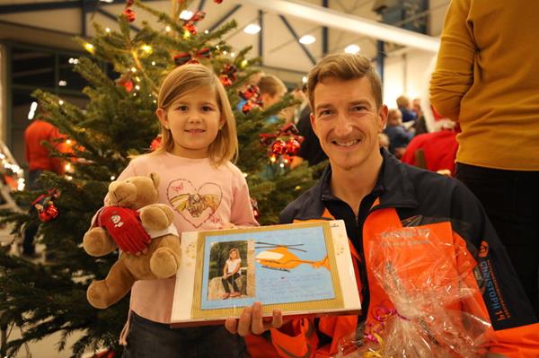 Mylie übergab Günther Zahmel, der das junge Mädchen gemeinsam mit dem Notarzt behandelt hatte, einen selbstgemalten Rettungshubschrauber und selbstgebackene Plätzchen.
