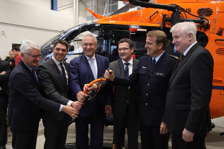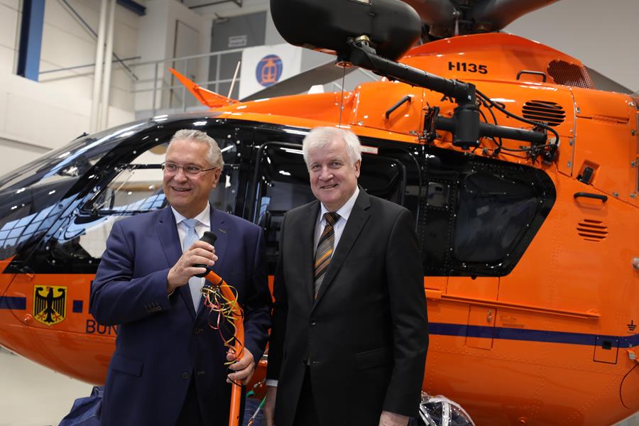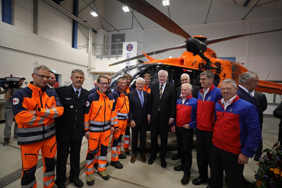 Aus den Händen von Bundesinnenminister Horst Seehofer nahm heute in Traunstein der Bayerische Staatsminister des Innern und für Integration, Joachim Herrmann im Beisein von BRK-Präsident Theo Zellner den ersten Zivilschutz-Hubschrauber (ZSH) der neuen Generation entgegen.