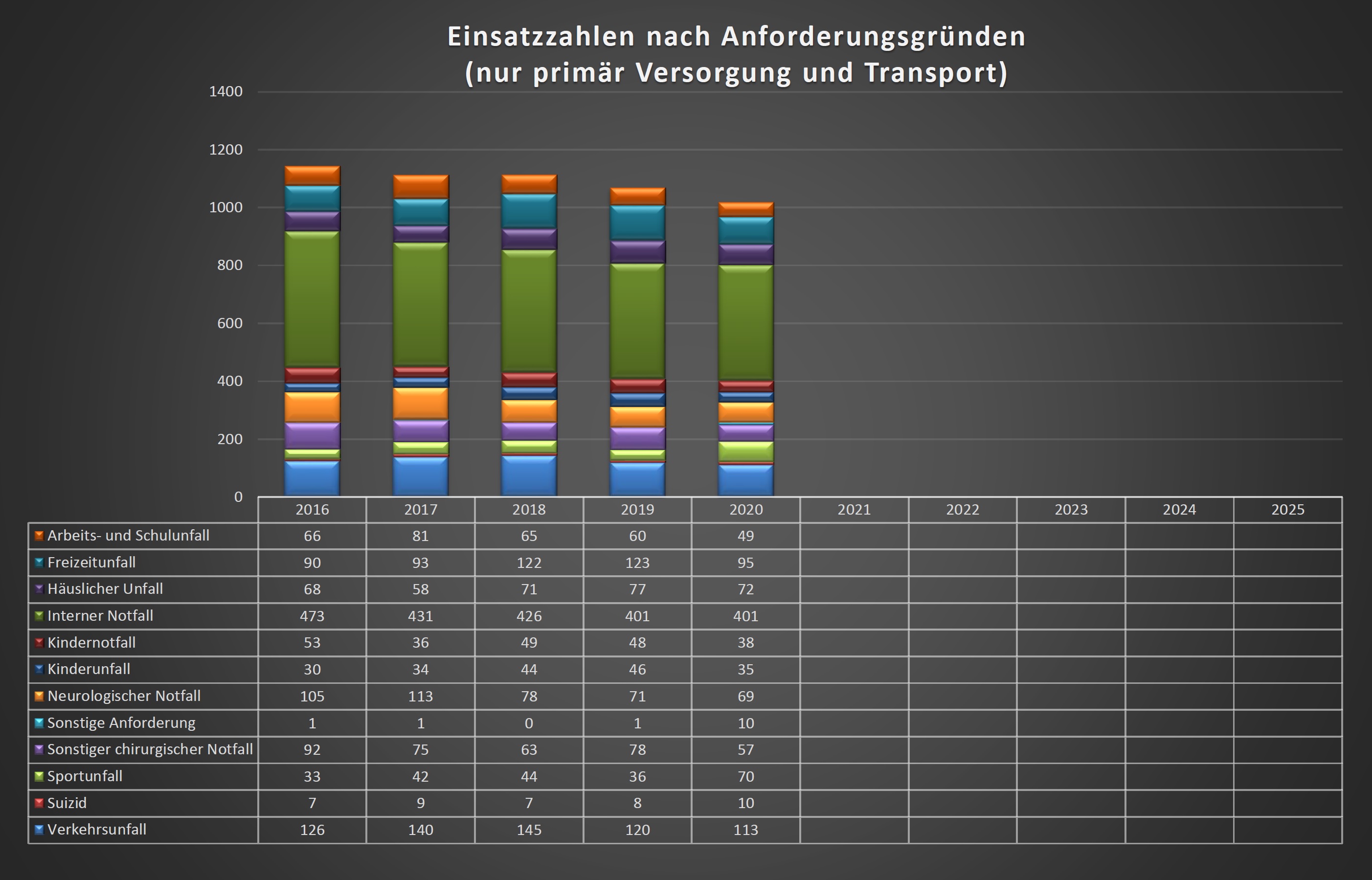 In nachstehender Statistik erfahren Sie mehr über die Einsatzzahlen und Anforderungsgründe des Rettungshubschraubers Christoph 14.